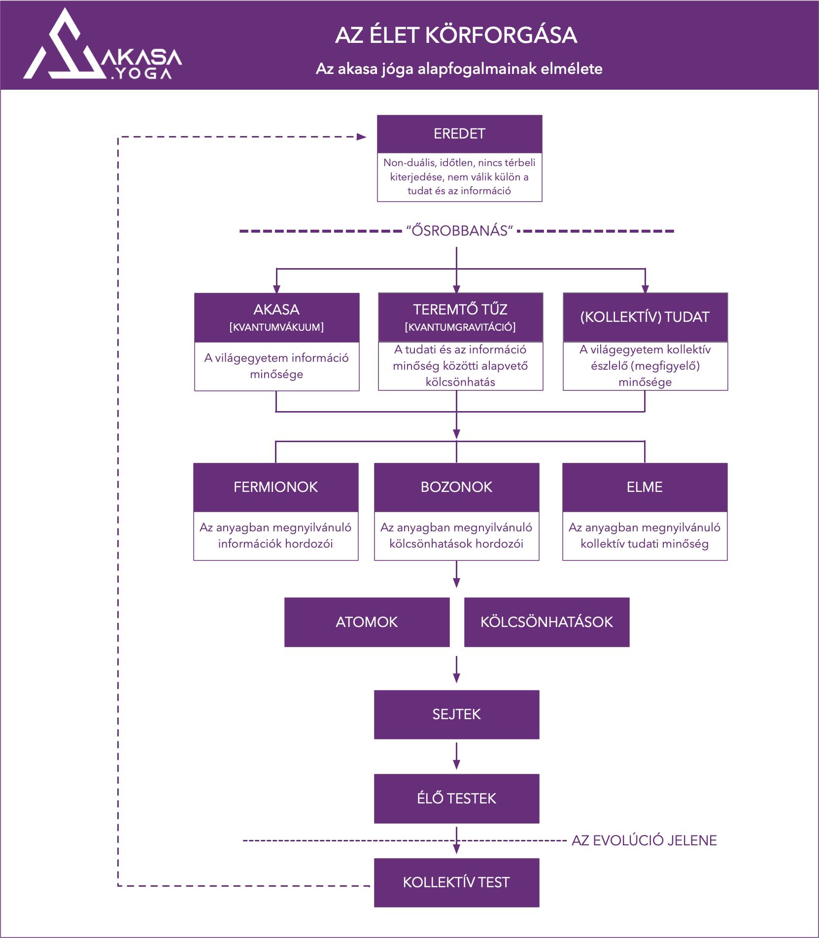 Az akasa jógában – számtalan buddhista és más lelki úthoz hasonlóan -, ezt a folyamatot szeretnénk “visszafordítani”, mivel az ember egyre inkább az elkülönülés hatása alá kerül. Ennek módja a visszakapcsolódás az Eredethez, azaz az elme-működésünk harmonizálása a nem-duális minőséggel.